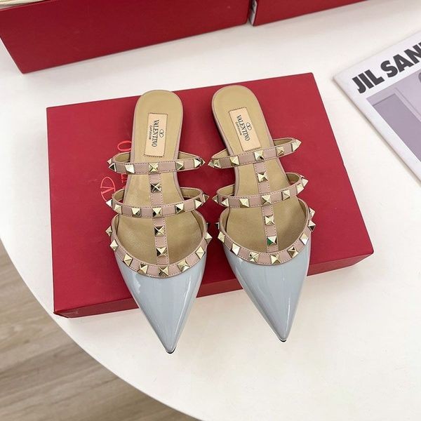 Valentino Rockstud De Las Mulas, Con Las Correas De Las Mujeres De Cuero De Patente, El Azul Del Cielo