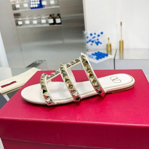 Valentino Rockstud Diapositivas Sin Límite De Los Montantes De Las Mujeres De Piel De Becerro Blanco