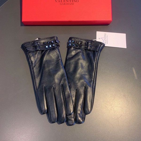 Valentino Rockstud Guantes Con Correas Ajustables A Las Mujeres De Piel De Oveja Negro