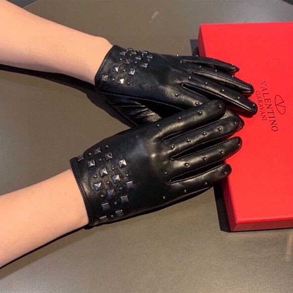 Valentino Rockstud Pico De Guantes De Mujer De Piel De Oveja Negro