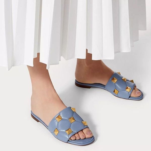 Valentino Romano Perno De Diapositivas De Las Mujeres De Cuero De Napa Azul Cielo-Azul Cielo Valentino Romano Perno De Diapositivas.-Nappa Cuero acolchado adornado con maxi tacos.-Maxi postes de madera con una antigüedad-acabado de latón.-Altura del tacón: 0,5 cm.-Las mujeres Tamaño: UE 35, EU 36, de la UE 37 de la UE, 38, UE 39 de la UE, de 40 años, la UE 41.