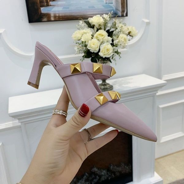 Valentino Romano Stud De Tacón Mulas Con Las Correas De Las Mujeres De Piel De Becerro De Color Púrpura