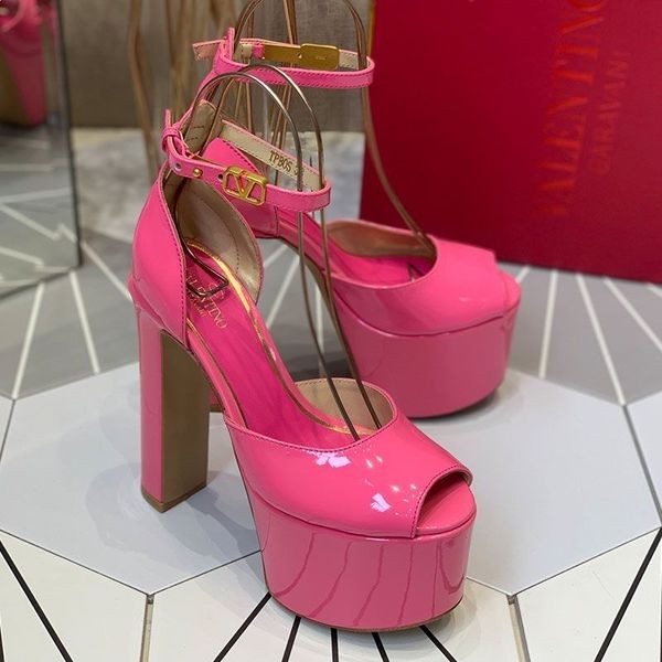 Valentino Tan-Go Sandalias De Plataforma Con Correa En El Tobillo De Las Mujeres De Cuero De Patente De Color Rosa