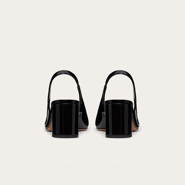 Valentino Un Montante Slingback Bombas De Las Mujeres De Cuero De Patente Negro