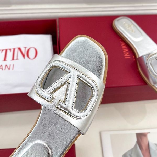 Valentino Vlogo Corte De Diapositivas De Las Mujeres De Piel De Becerro De La Plata-La Plata Valentino Vlogo Corte De Diapositivas.-Vlogo Firma De Corte De Piel De Becerro Detalle Con Espejo-Efecto De Recorte.-Plantilla Con Talón Acolchado Para La Comodidad Adicional.-Las mujeres Tamaño: UE 35, EU 36, de la UE 37 de la UE, 38, UE 39 de la UE, 40, EU 41, 42 de la UE, la UE 43.