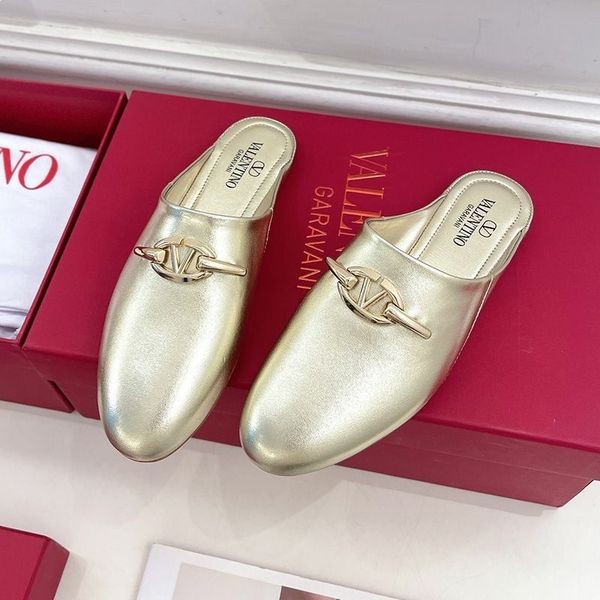 Valentino VLogo Encadenado Slip-On De Las Mulas, Las Mujeres De Piel De Becerro De Oro