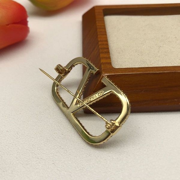 Valentino VLogo Firma Broche En Metal Con Cristales De Oro