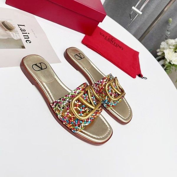 Valentino VLogo Firma De Diapositivas De Las Mujeres De La Armadura De Cuero De Oro/Multicolor