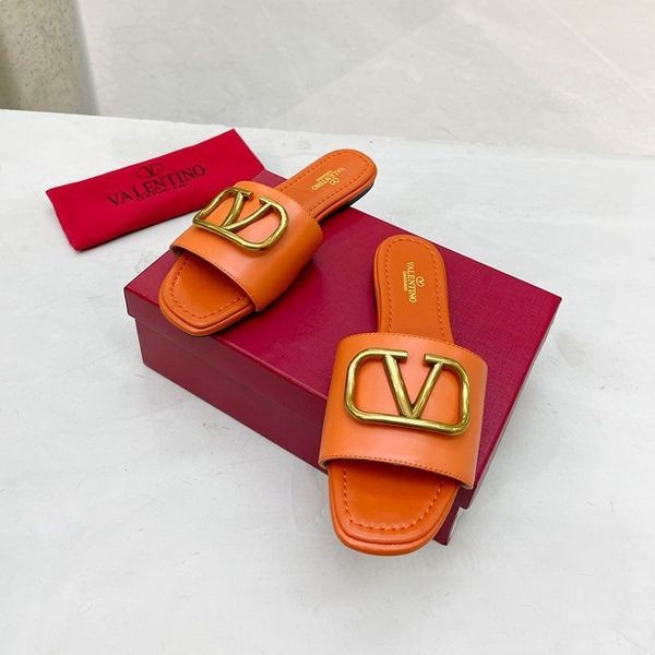 Valentino VLogo Firma De Diapositivas De Las Mujeres De Piel De Becerro De Color Naranja