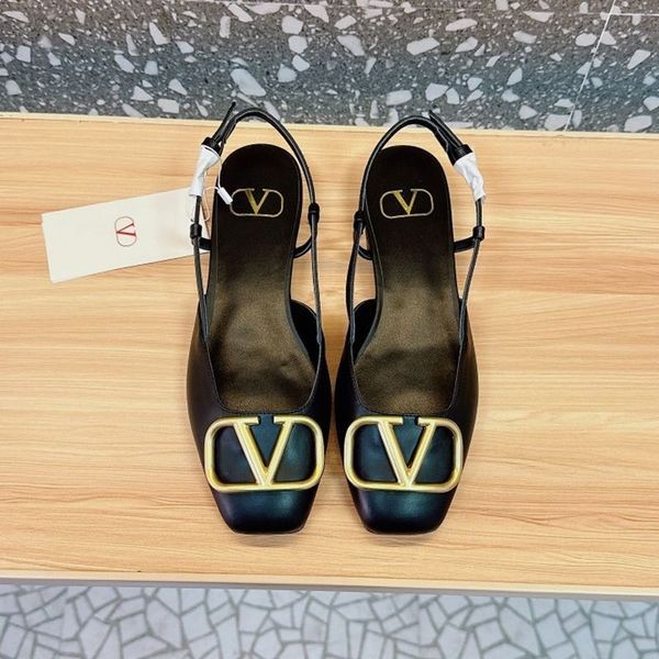 Valentino VLogo Firma Slingback Pisos De Las Mujeres De Piel De Becerro Negro