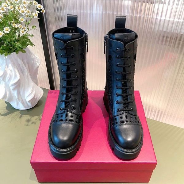 Valentino Klassinen Combat Saappaat Naisille Laser-Cut Nahka Musta
