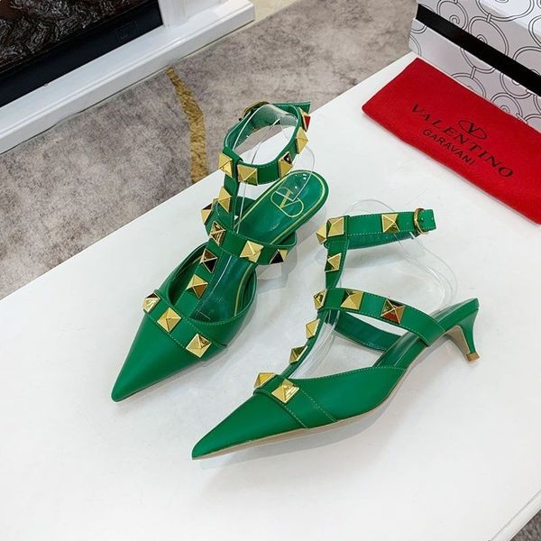 Valentino Roman Yo Pumput Hihnat Naisten Calfskin Vihreä