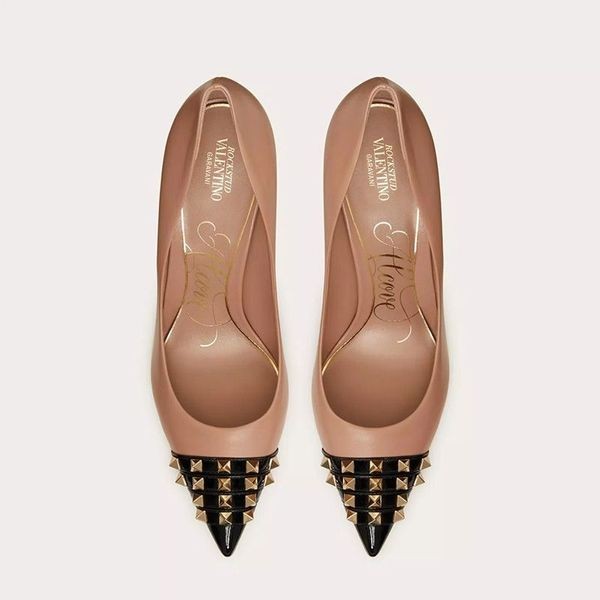 Valentinon Rockstud Pumput Nastoitettu Kärjys Naisten Sileä Nahka-Vaaleanpunainen/Musta