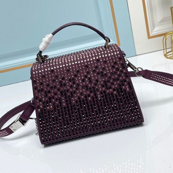 Valentino Mini Vsling Sac À Main Avec Le Scintillement Des Cristaux En Cuir De Veau Violet/Noir