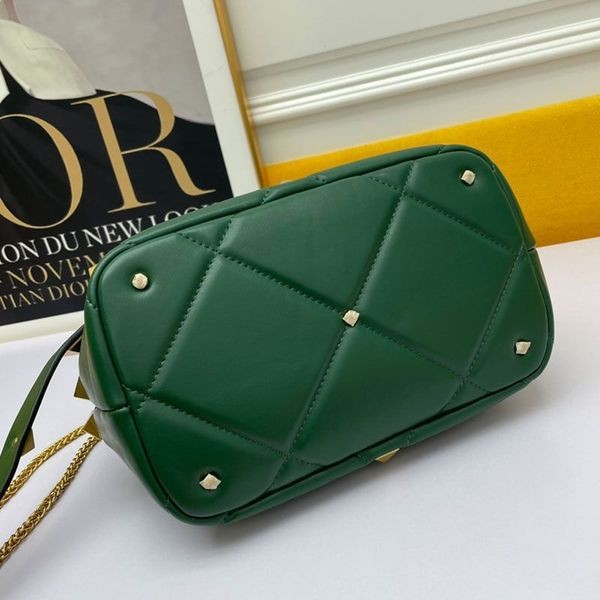 Valentino Moyenne Romain Goujon Sac À Main En Cuir Nappa Vert-Vert Valentino Valentino Romain Goujon Sac À Main.-La peau de mouton.-Modèle matelassé et décoré avec maxi crampons.-Antique en laiton-finition clous métalliques et le matériel.-Compartiment avant avec verrou de fermeture.-Compartiment arrière avec fermeture magnétique.-Doublure en peau de mouton.-Taille: W28 * H22 * D17 cm.