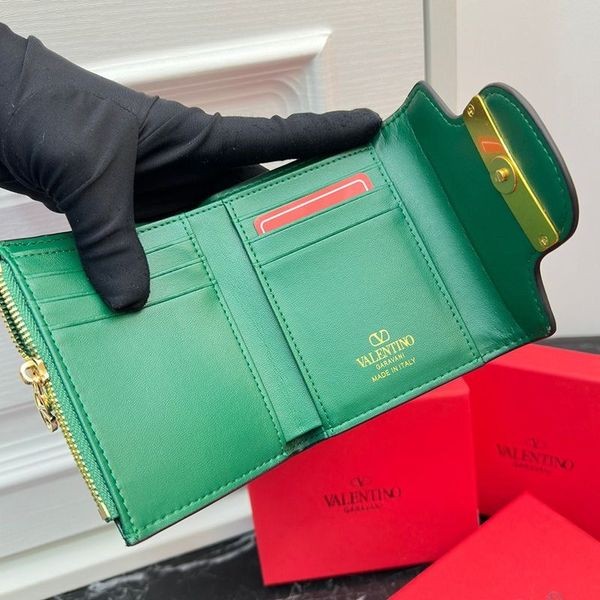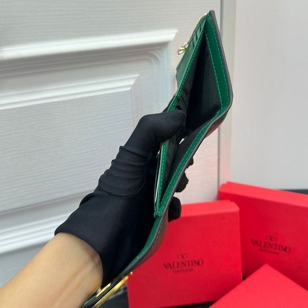 Valentino Petit Alltime De Ces Porte-Monnaie En Cuir De Veau Vert