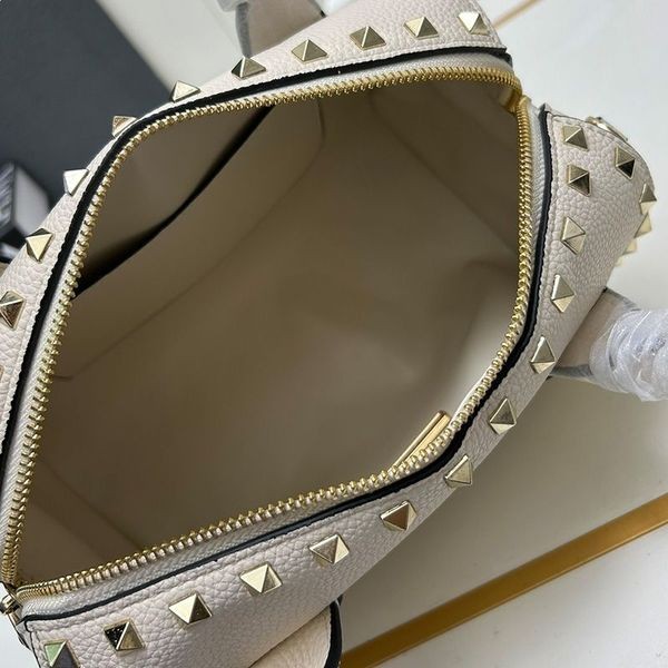 Valentino Petit Rockstud Boston Sac En Cuir De Veau Grainé Beige-Beige Valentino Rockstud Boston Sac.-Grain Cuir De Veau.-La fermeture à glissière.-Bandoulière amovible.-Intérieur: une poche de glissement.-Taille: W24 * H13 * D16 cm.