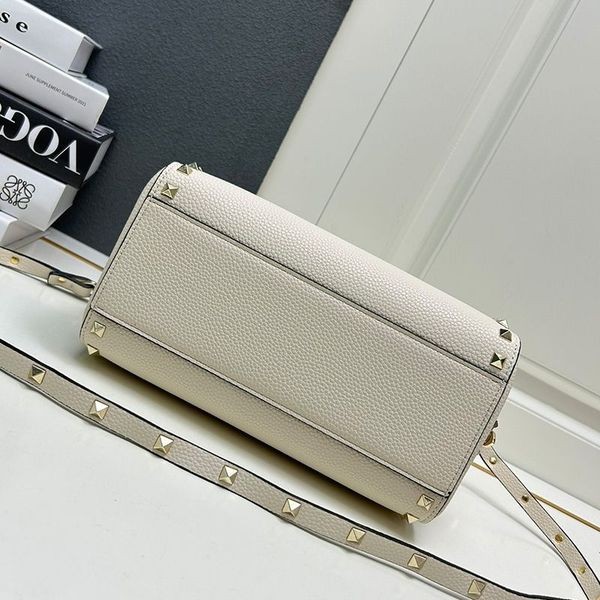 Valentino Petit Rockstud Boston Sac En Cuir De Veau Grainé Beige