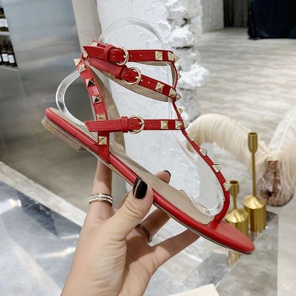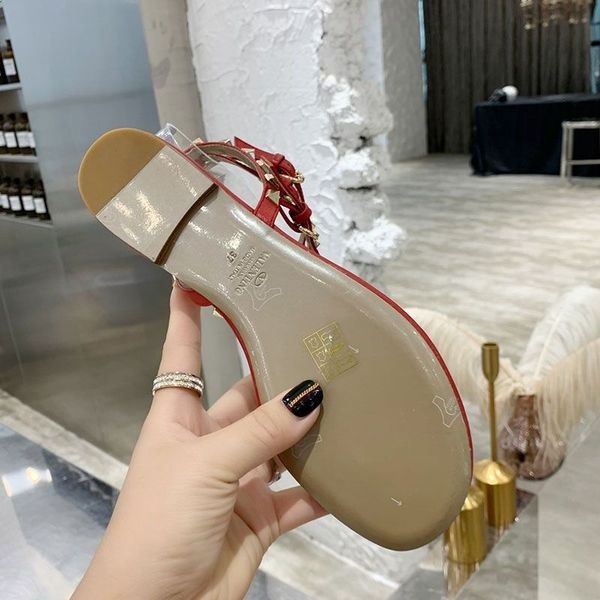 Valentino Rockstud Flip-Flop Sandales Plates Femmes De Cuir De Veau Rouge