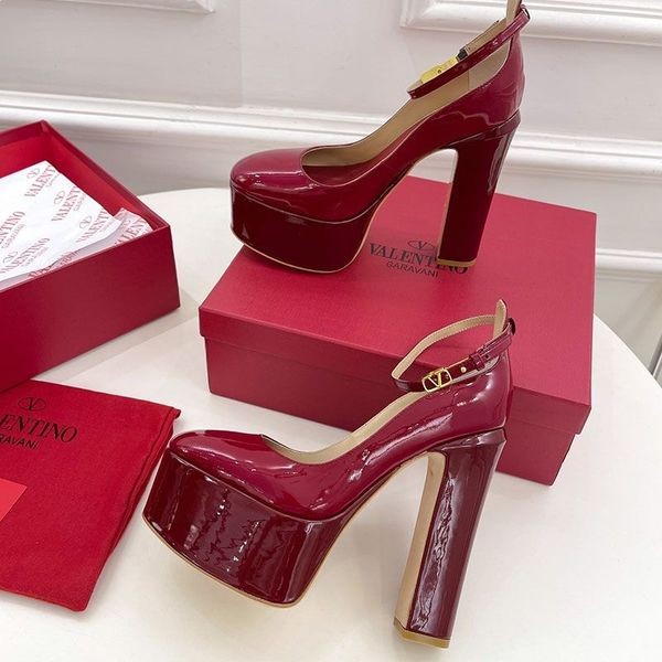 Valentino Tan-Go Plate-Forme Pompes Avec Bride À La Cheville Femmes En Cuir Verni Bourgogne