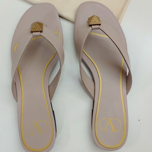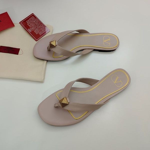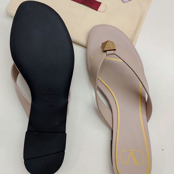 Valentino Un Goujon De Flip-Flop Diapositives Femmes En Cuir De Veau Kaki