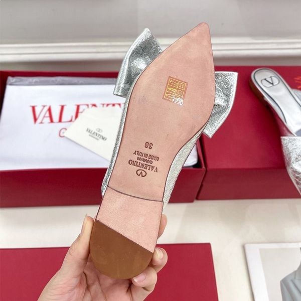 Valentino VLogo Arc Mules Femme Cuir Verni Argent