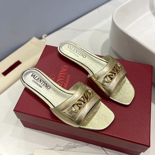 Valentino VLogo De La Chaîne De Diapositives Femmes Veau D'Or