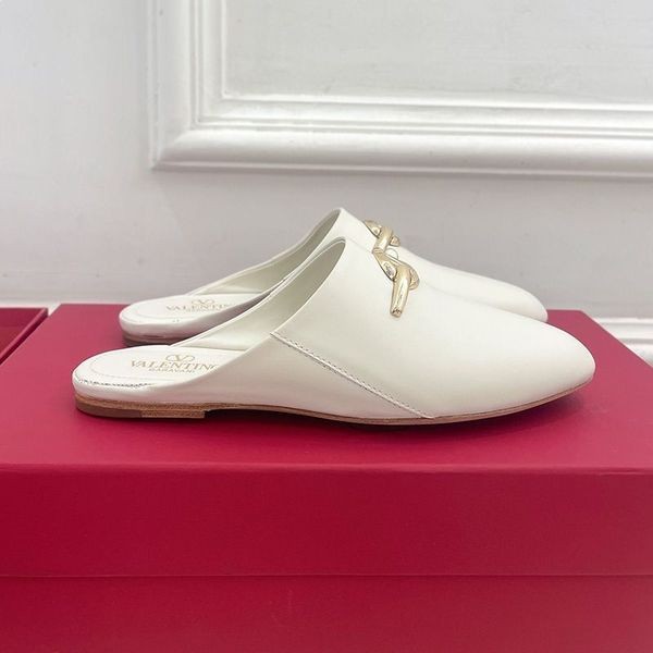 Valentino VLogo Enchaîné Glisser Sur Des Mules Femme En Cuir De Veau Blanc