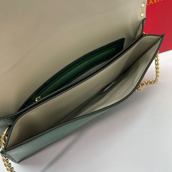 Valentino Mór Rockstud Wristlet Clutch le Slabhra Calfskin Glas-Glas Valentino Rockstud Wristlet Clutch.-Grainy Calfskin. -Ór-bailchríoch studs agus crua-earraí.-Maighnéadach dúnadh léim.-Wristlet a láimhseáil, Inbhainte strap Slabhra.-Taobh istigh: urrann, póca zipper.-Méid: W28 * H16 * D8 cm.