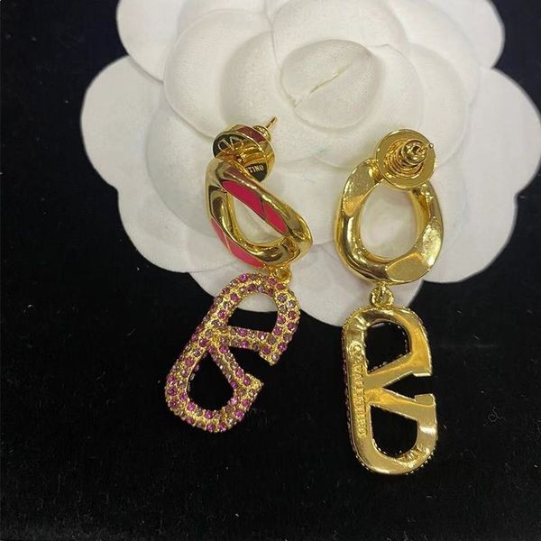 Valentino VLogo Pendant Síniú Cluaise Miotail le Criostail Óir/Pink-Gold/Pink Valentino VLogo Síniú Cluaise.-Miotail.-VLogo le Criostail.-Bioráin cheangail le haghaidh cluasa pollta.