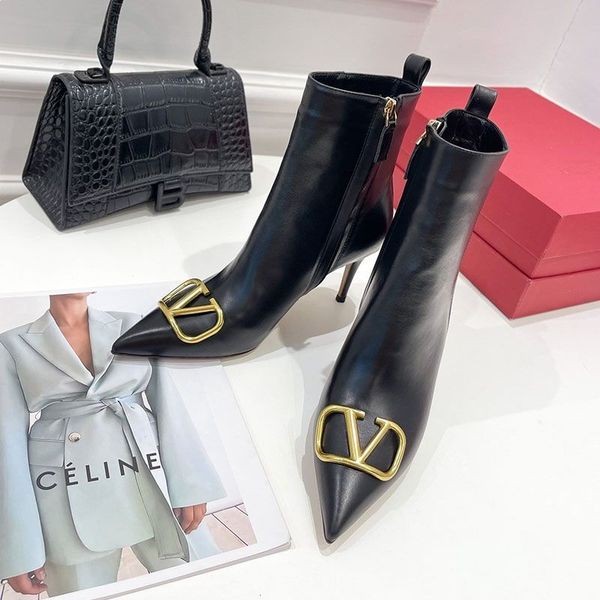 Valentino VLogo Sigture Rúitín Booties Mná Calfskin Dubh