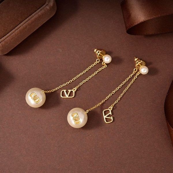 Marke naušnice-opskrbnog Valentino Small VLogo od metala s biserima zlatne boje - Zlatna branded naušnice Valentino VLogo.-Metal.-Dvije duge влога s biserima.-Zlatna završiti.-Kopča-Leptir s biserima.