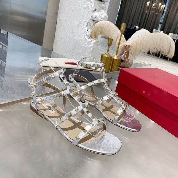 Valentino Rockstud Lapos Szandált A Boka Heveder Női Borjúbőr Ezüst