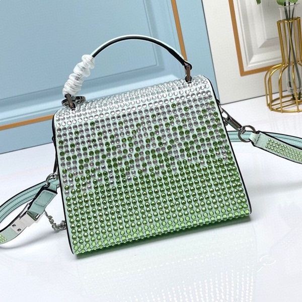 Valentino Mini Vsling Borsa con Cristalli Scintillanti In pelle di Vitello Azzurro/Verde-Azzurro/Verde Valentino Vsling Borsa.-Pelle di vitello con Cristalli Scintillanti Ricami.-Hardware con hardware in argento di finitura.-Interamente coveRedin Cristalli con VLogo Firma di chiusura.-Tracolla in pelle con catena regolabile.-A chiusura magnetica.-Piedini protettivi.-Nappa fodera. Interni: tasca aperta antiscivolo.-Dimensioni: W19 * H13 * D9 cm.