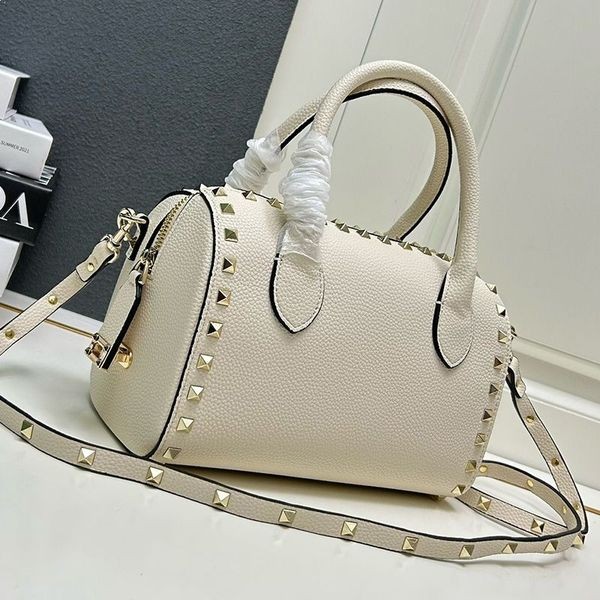 Valentino Piccolo Rockstud Boston Bag In Grana Pelle Di Vitello Beige-Beige Valentino Rockstud Borsa Boston.-Grana Pelle Di Vitello.-Cerniera di chiusura.-Tracolla removibile.-Interno: una tasca aperta antiscivolo.-Dimensioni: W24 * H13 * D16 cm.