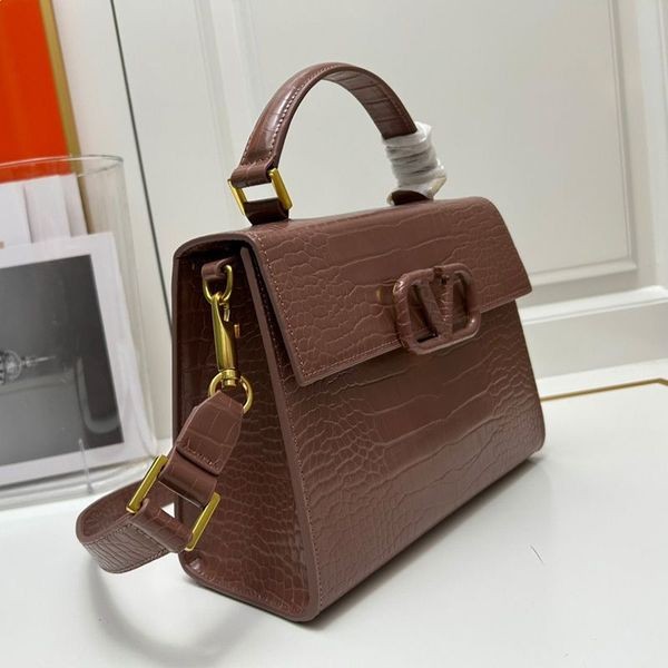 Valentino Piccolo Vsling Borsa A Mano In Pelle Di Coccodrillo Khaki-Khaki Valentino Vsling Borsa.-In Pelle Di Coccodrillo.-Mobili in ottone-finitura hardware in metallo.-Top manico, tracolla con catena regolabile.-Chiusura magnetica, in pelle,-coveRedlogo.-Interni: tasca con cerniera.-Dimensioni: W25.5 * H19 * D12 cm.