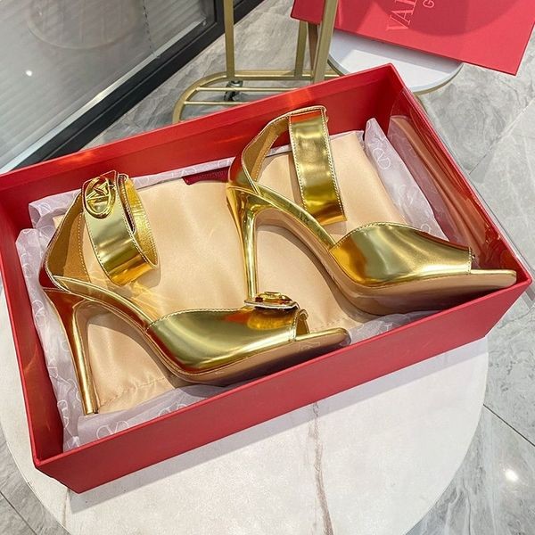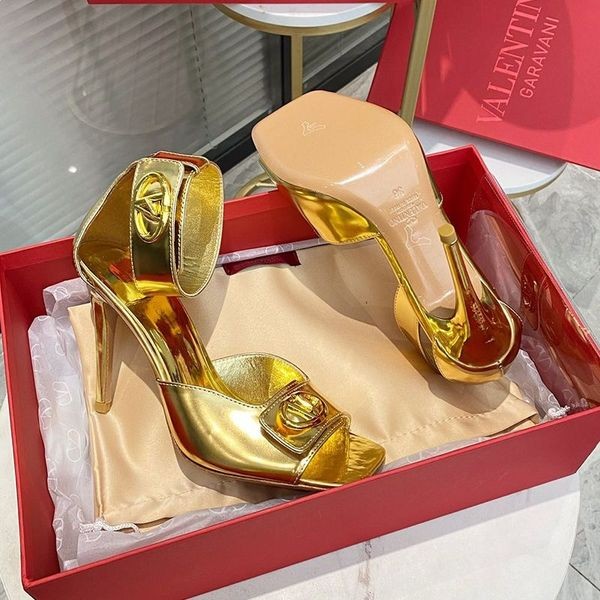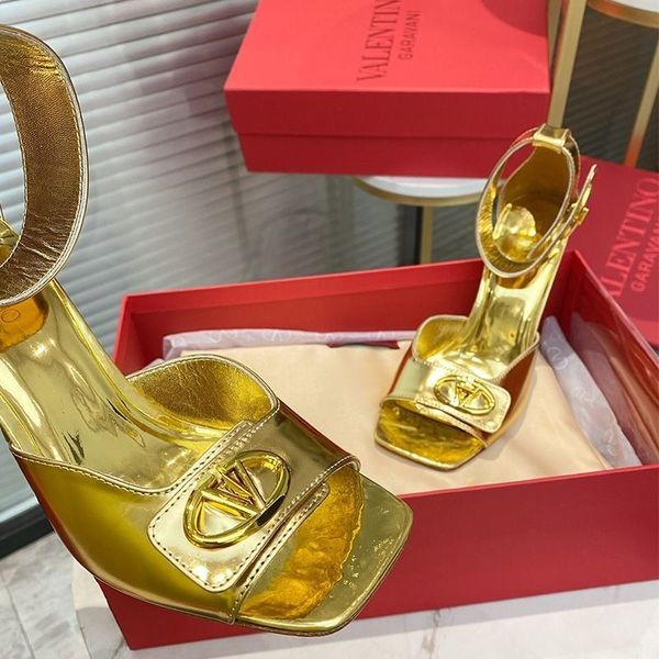 Valentino Vlogo Romano Fibbia Sandali Donna In Pelle Di Vitello Oro