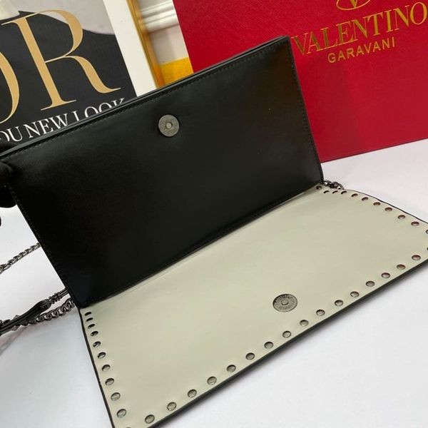 ヴァレンティノ大Rockstud WristletクラッチチェーンにCalfskinブラック/シルバー