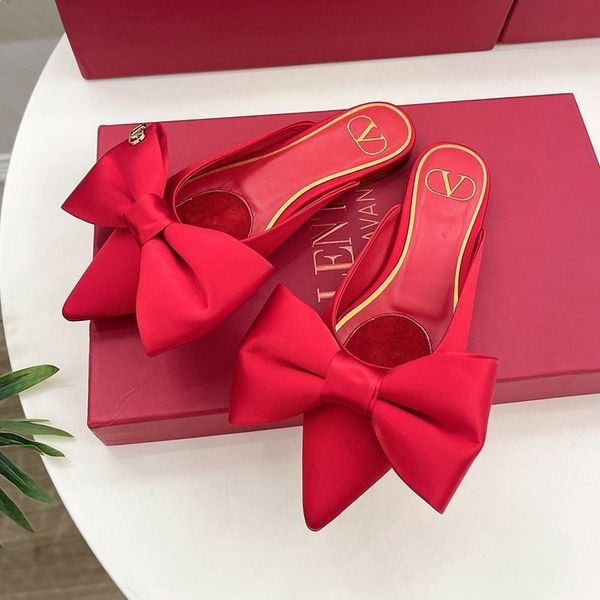 발렌티노 VLogo 활 노새 여성 실크 레드