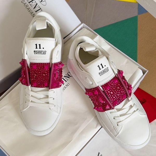 Rockstud Valentino Untitled Sneakers Met Sprankelende Kristallen Unisex Kalfsleer Wit/Rood
