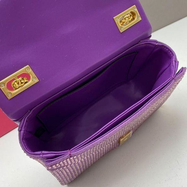 Valentino Kleine Stud Crossbody Tas Met Ketting en Fonkelende Kristallen In Suede Paars