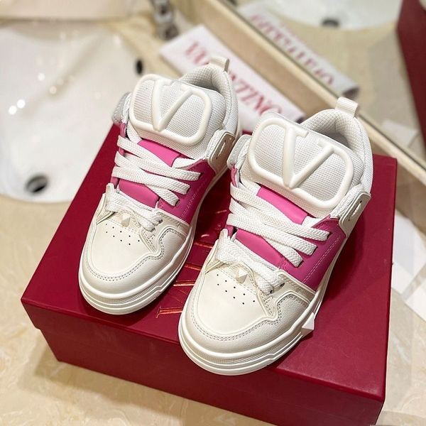 Valentino Open Skate Sneakers Met VLogo Unisex Kalfsleer en Stof-Wit/Roze