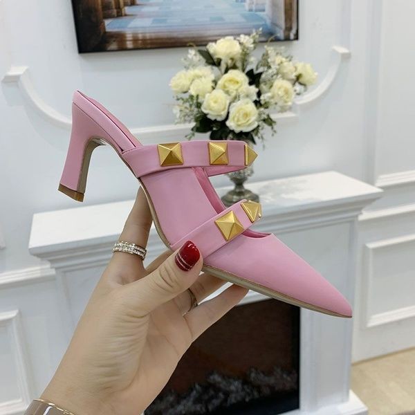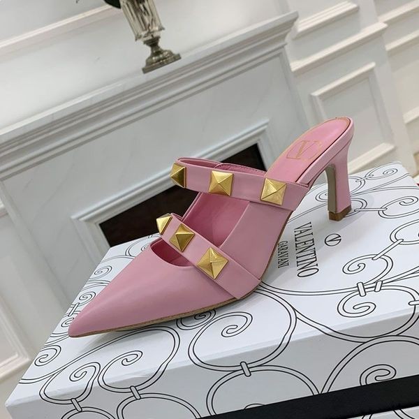 Valentino Romeinse Stud Hakken Muilezels Met Riemen Vrouwen Roze Kalfsleer