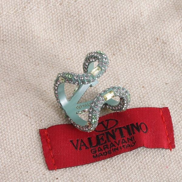 Valentino VLogo Handtekening Open Ring In Metalen Met Kristallen Teal-Teal Valentino VLogo Handtekening Ring.-Metaal.-VLogo met Kristallen.-Verstelbare Open Manchet.