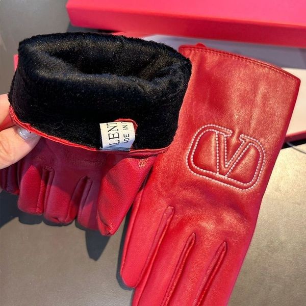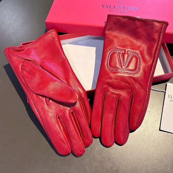 Valentino VLogo Reliëf Handschoenen Vrouwen Schapenvacht Rood-Red Valentino VLogo Reliëf Handschoenen.-Schapenvacht.-VLogo detail.-Handschoenen voor vrouwen.-Maat: M, L.
