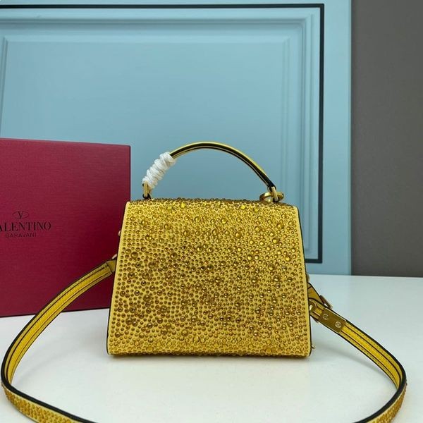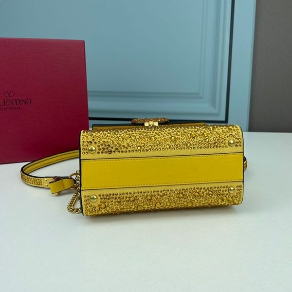Valentino Mini Vsling Veske med Glitrende Krystaller I Kalveskinn Gul-Gul Valentino Vsling Veske.-Kalveskinn med Glitrende Krystaller Broderi.-Maskinvare med et gull hardware ferdig.-Helt coveRedin Krystaller med VLogo Signatur nedleggelse.-Skinn skulderveske med regulerbar kjede.-Magnetisk lukking.-Beskyttende føtter.-Nappa fôr. Interiør: åpne slip lomme.-Størrelse: W19 * H13 * D9 cm.