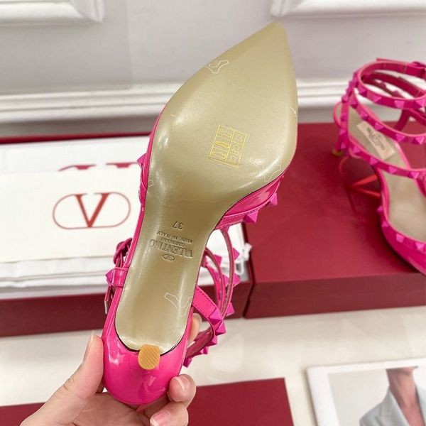 - Damskie czółenka Valentino Rockstud W Klatce Z Lakierowanej Skóry w Kolorze Różowym