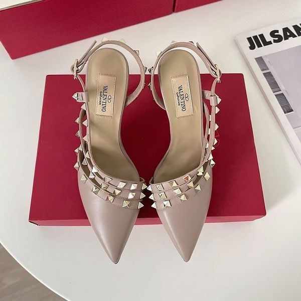 - Damskie czółenka Valentino Rockstud z Asymetryczne Paski ze skóry Cielęcej Różowy