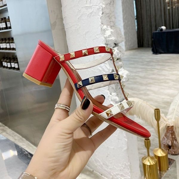 Damskie zjeżdżalnie na grubym obcasie od Valentino Rockstud z cielęcej skóry czerwony / brązowy kolor - czerwone / brązowe zjeżdżalnie od Valentino Rockstud.-Skóra bydlęca. -Paski ozdobione nitami.-Wysokość obcasa: 6 cm, 9 cm-Damski rozmiar: EU 34 EU 35, EU 36 EU 37, EU 38 EU 39, EU 40, EU 41.