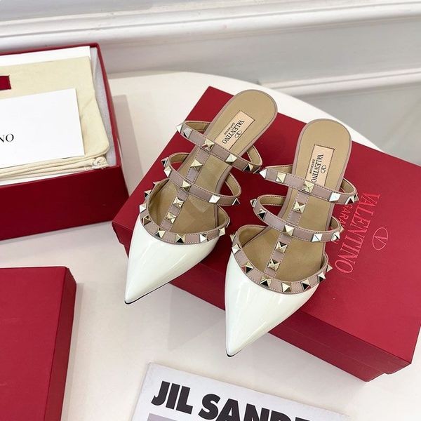Damskie Japonki Valentino Rockstud Na Wysokim Obcasie I Z Paskami Z Lakierowanej Skóry W Kolorze Białym
